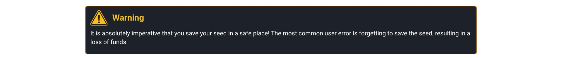 On the next page you will see a series of words. This is your unique and private seed and it is the ONLY way to recover your wallet in case of lass or malfunction. It is YOUR responsibility to write it down and store it in a safe place outside of the Cake Wallet app.
