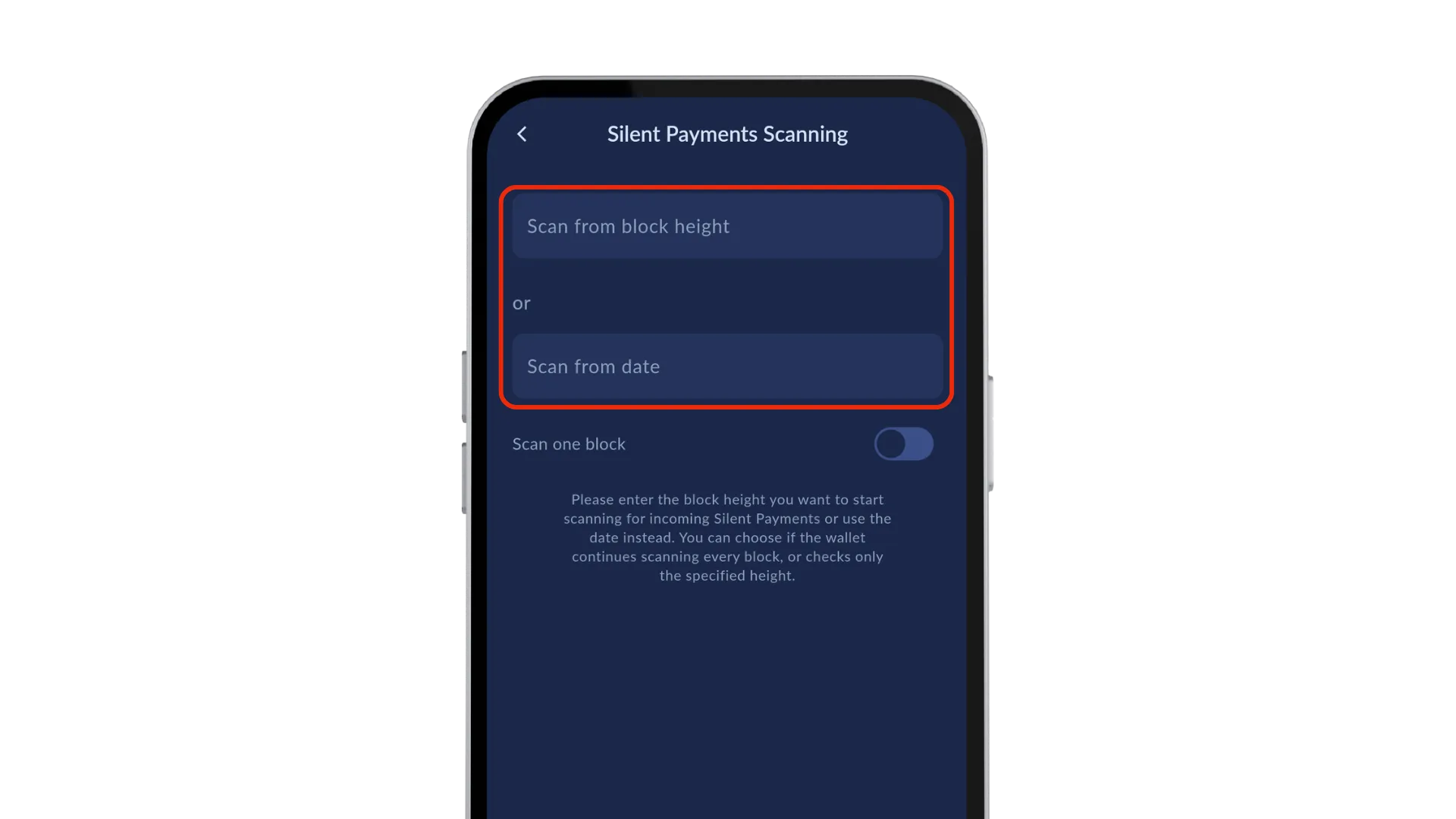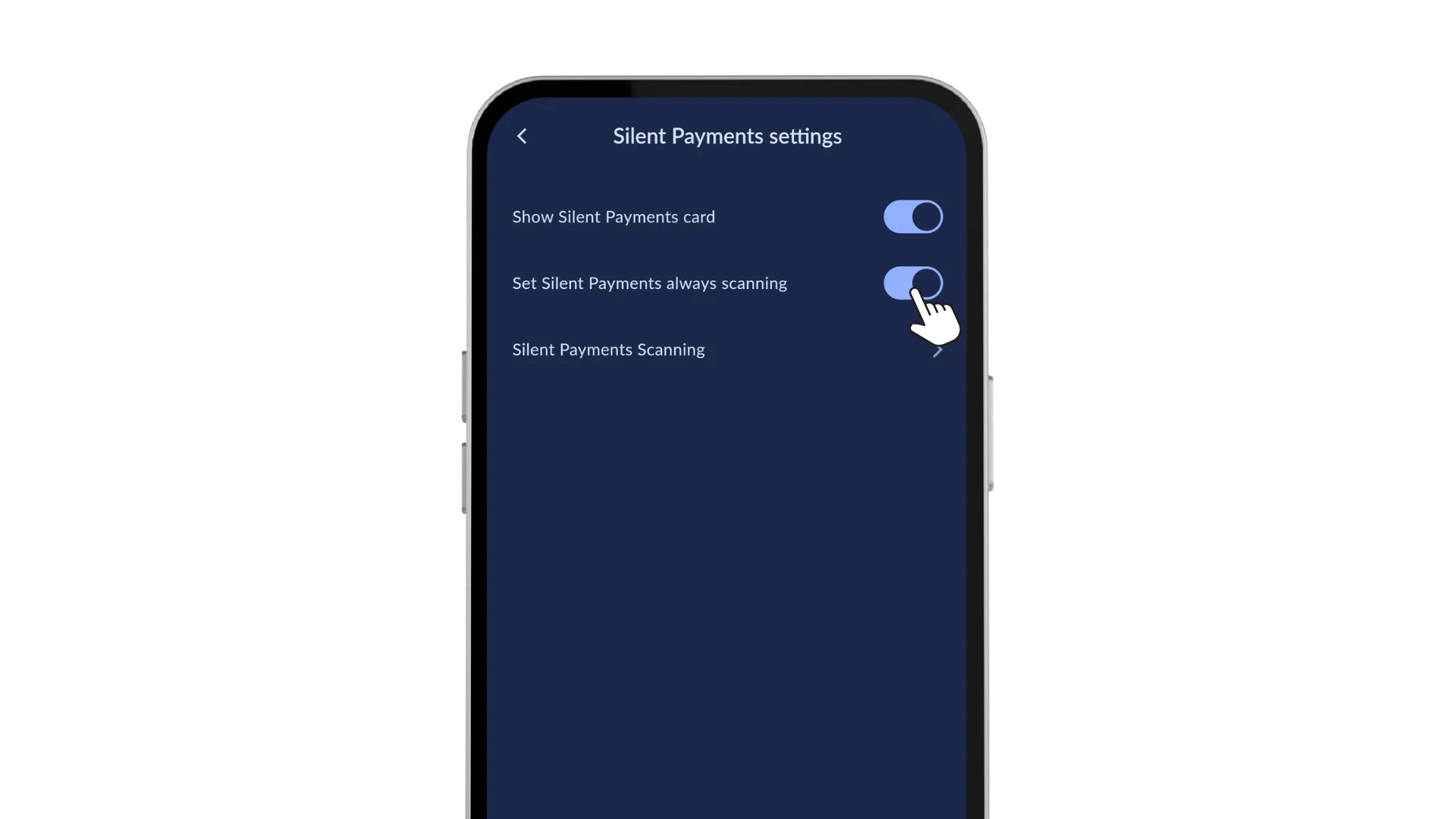 - Silent Payments card to start scanning for transactions sent to your Silent Payment address