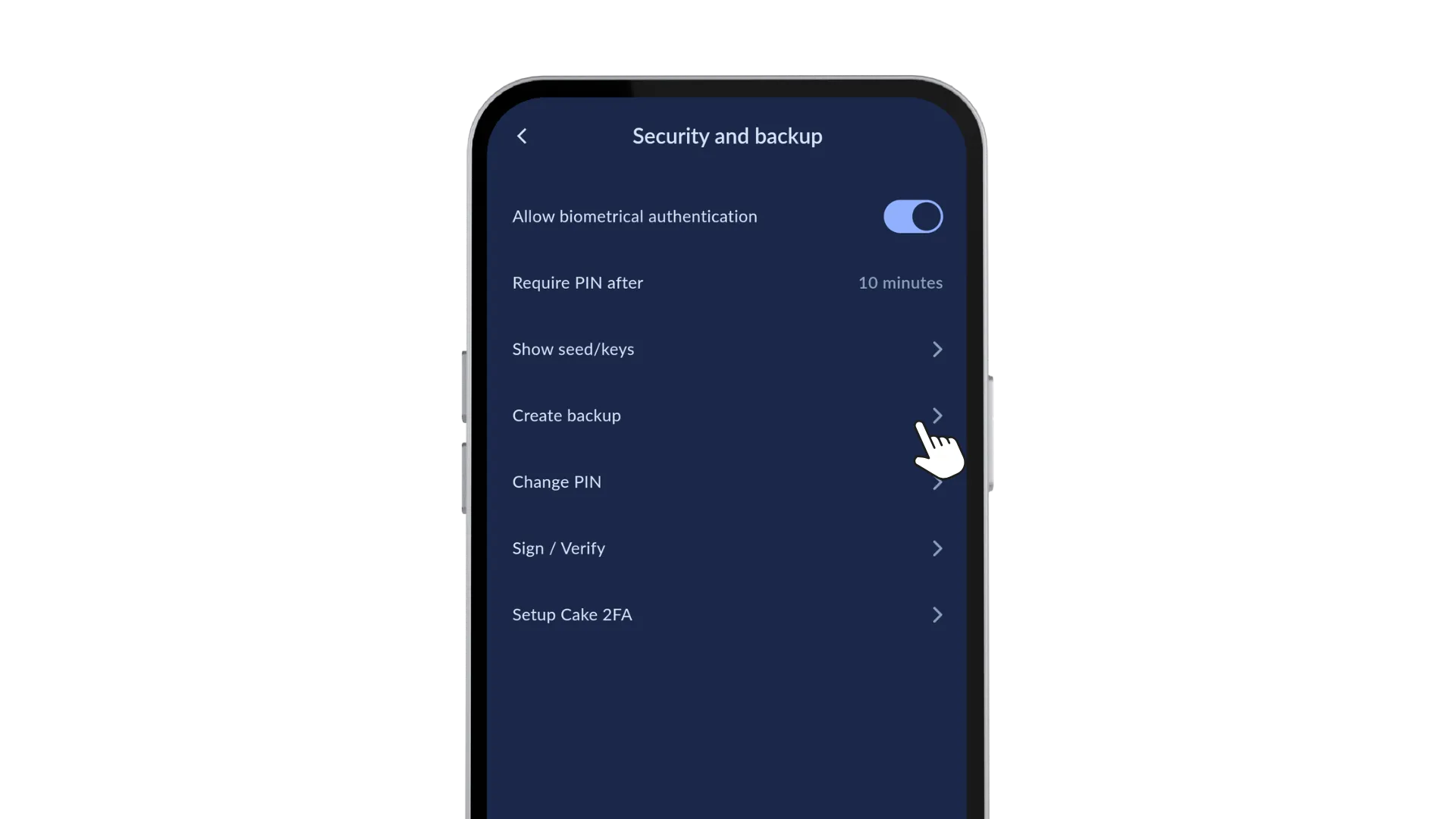 To secure our wallet, we can create a backup by following the in-app prompts. This will ensure we have a safe copy of our private keys, allowing us to recover our wallet if it’s lost or stolen. Additionally, we can view our seed phrase and private keys, change our PIN, enable biometric authentication, Sign / Verify, and set up 2FA for an extra layer of protection.