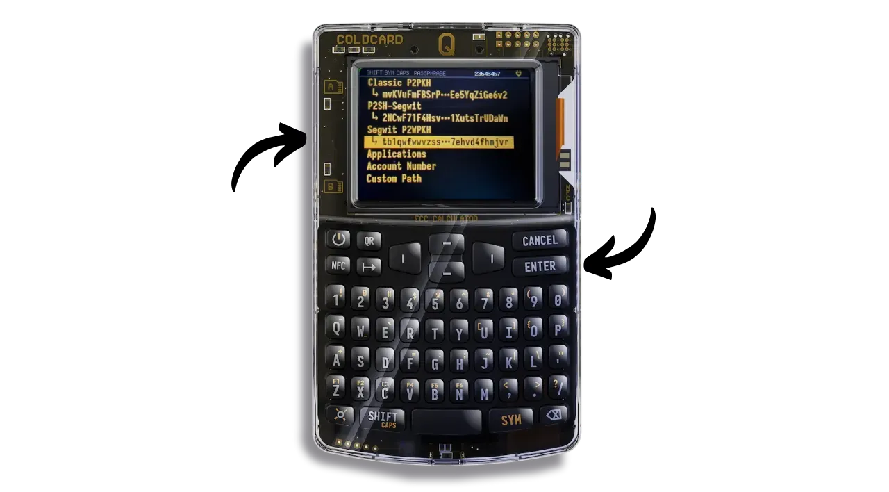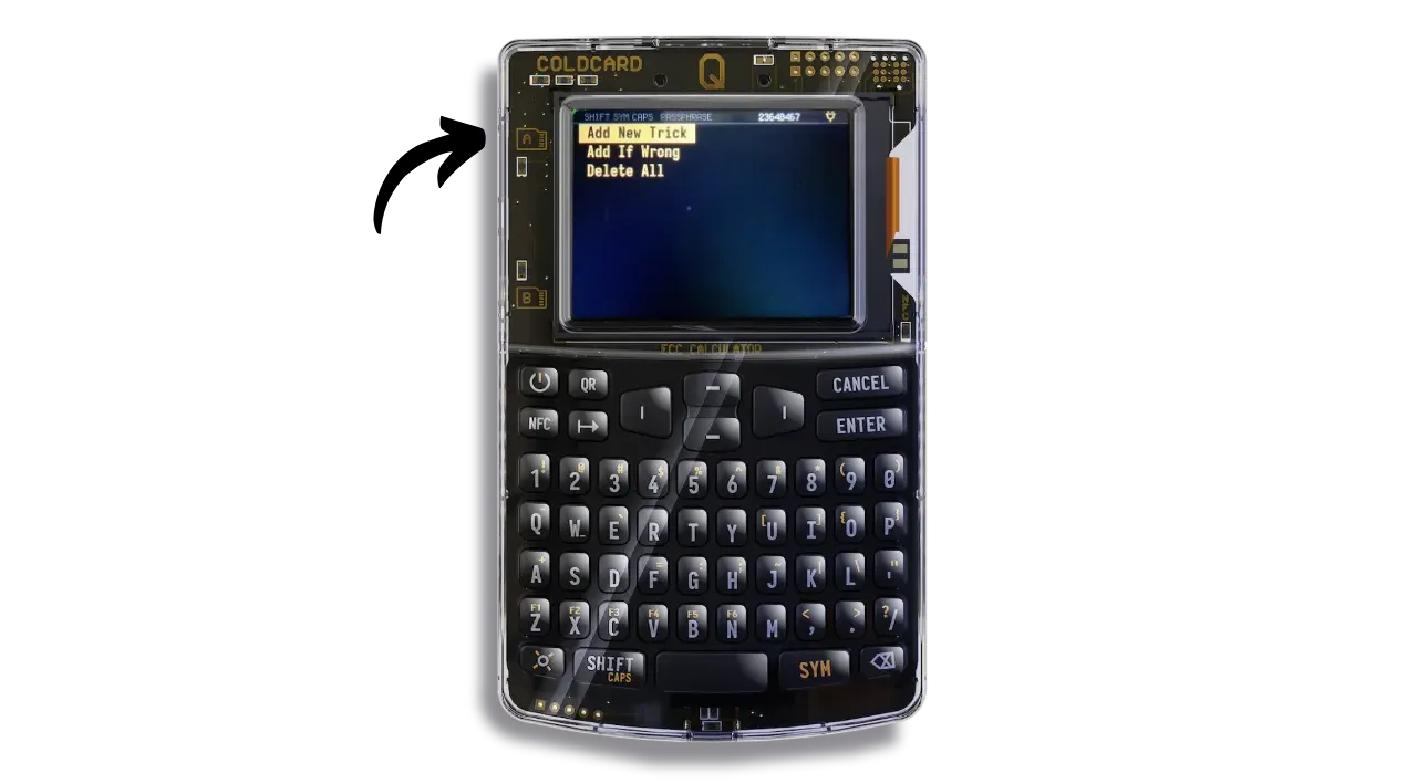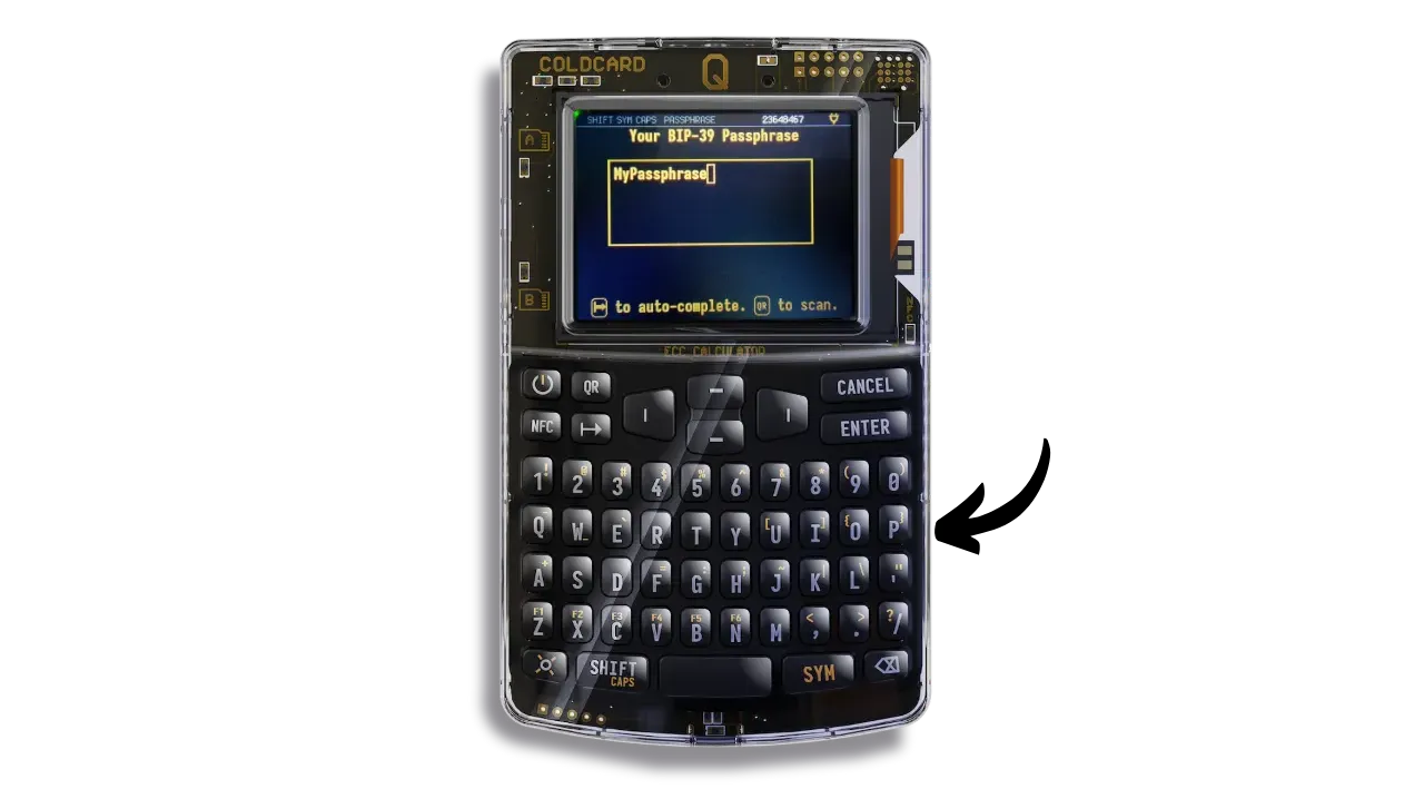 - Classic entry: you enter the passphrase manually each time you use your hardware wallet, just as you do with other hardware wallets. COLDCARD Q simplifies this task with its full keyboard.