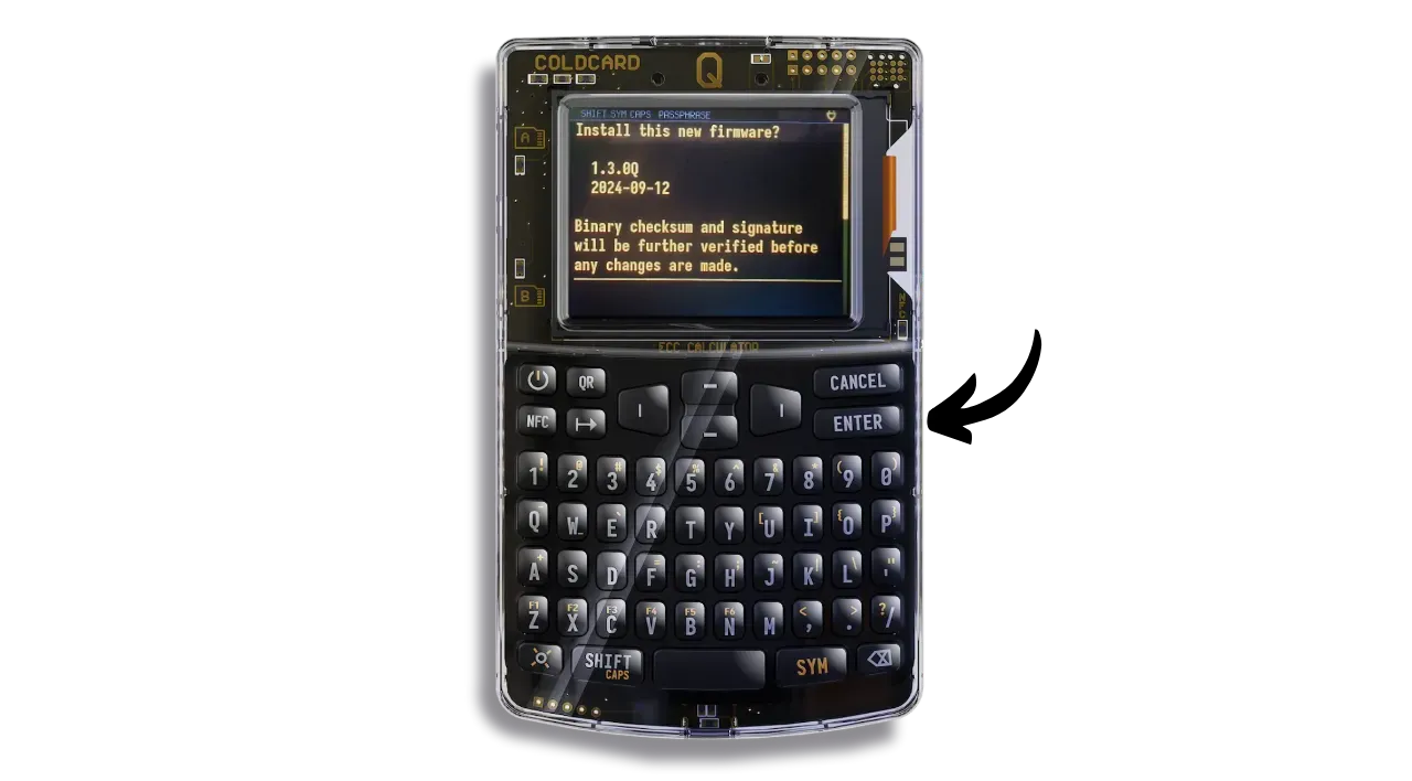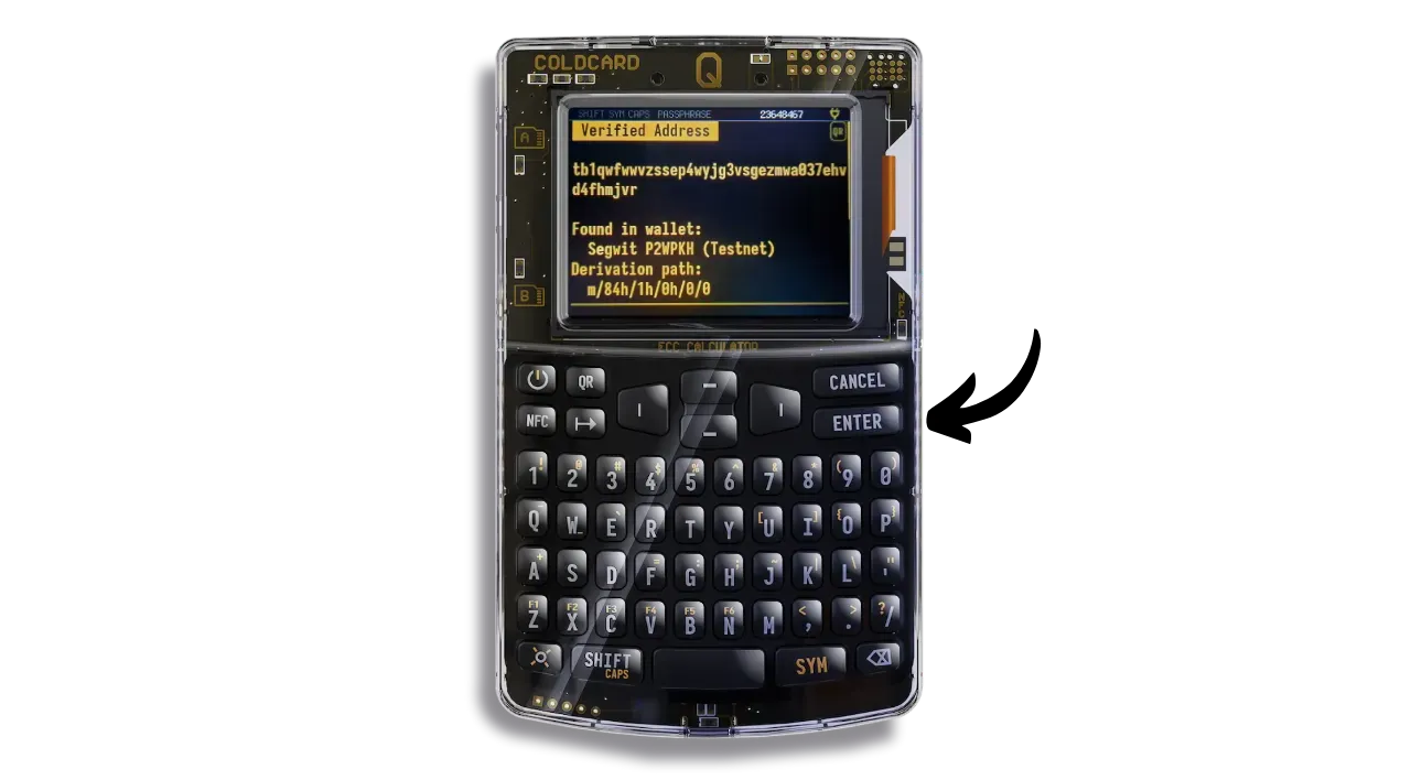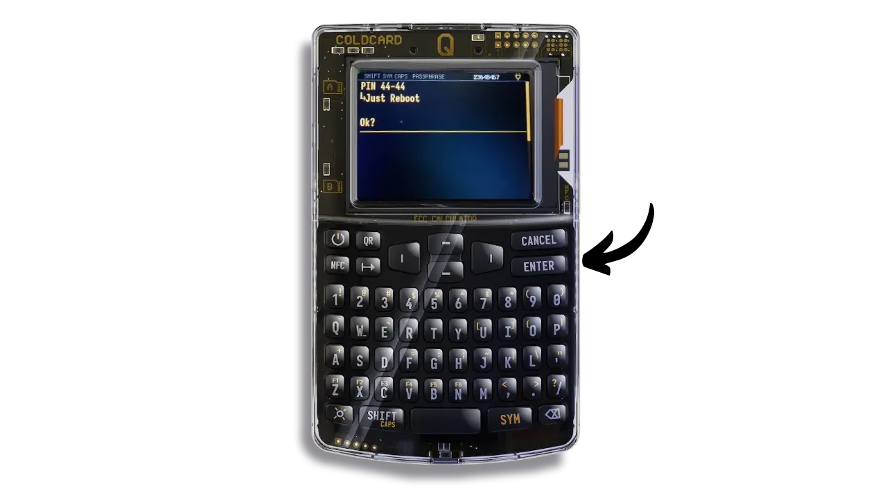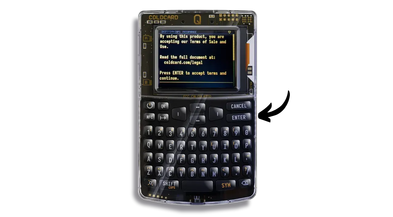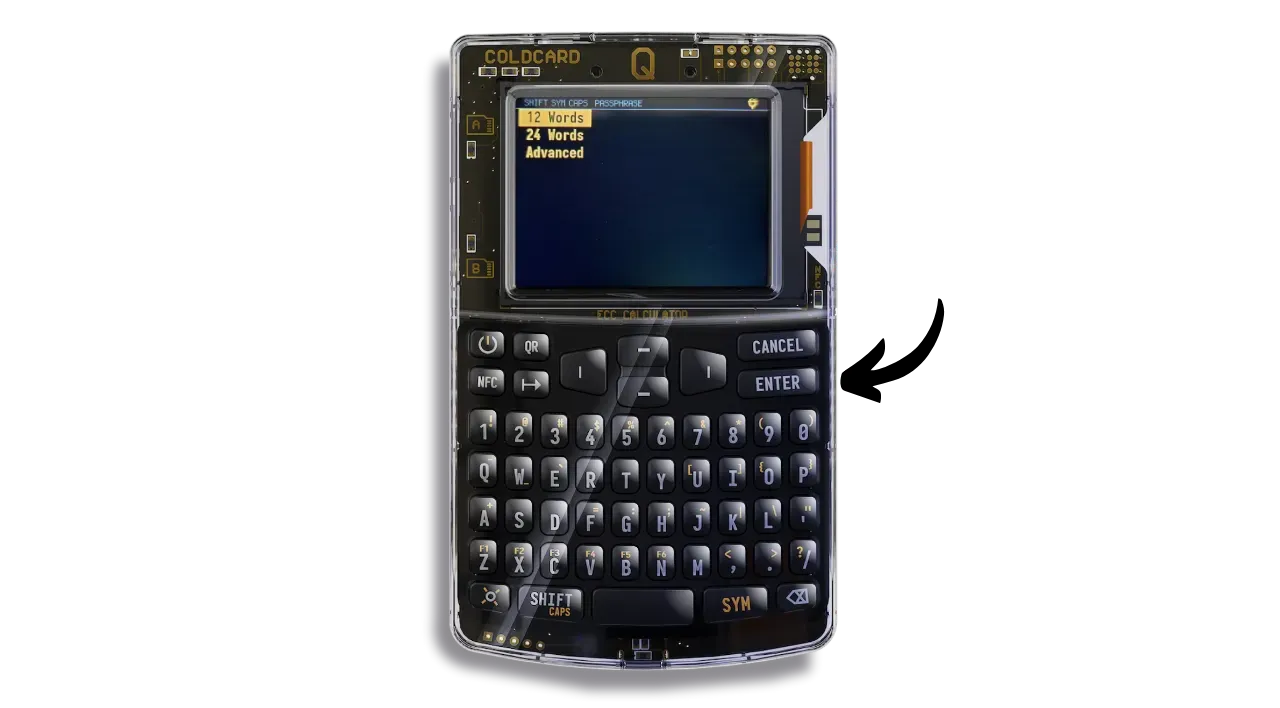 Bear in mind that once you’ve set up the passphrase on your wallet, your mnemonic alone won’t be enough to regain access to your bitcoins. You’ll need both the mnemonic and the passphrase. What’s more, you’ll need to enter the passphrase every time you unlock your COLDCARD Q. This enhances security by making physical access to the COLDCARD and knowledge of the PIN insufficient without the passphrase.