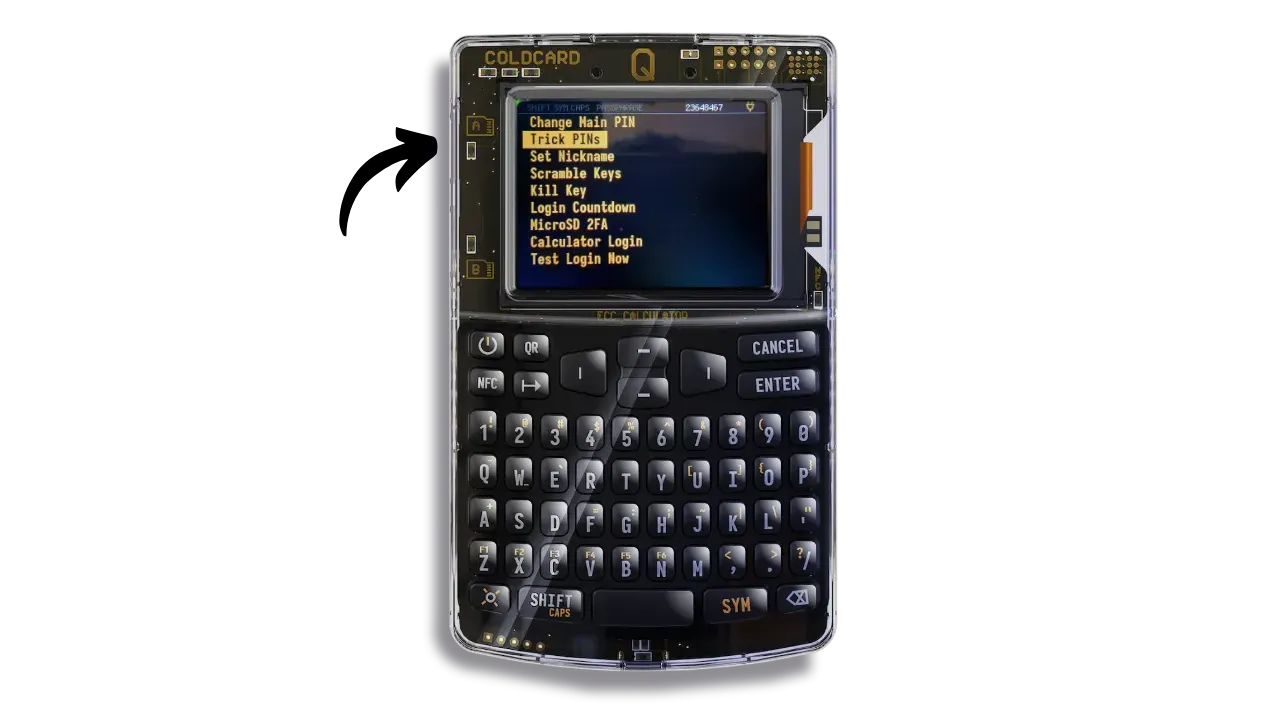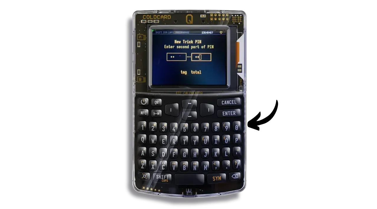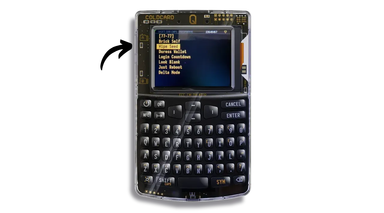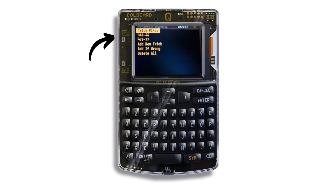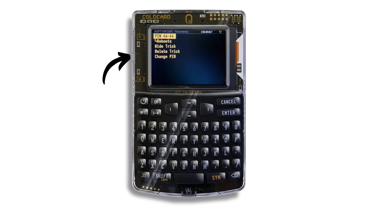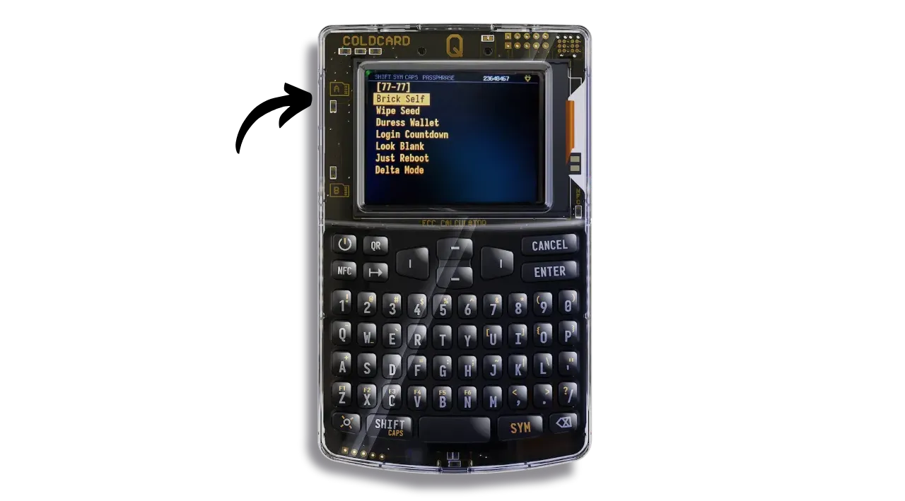 - “Brick Self”: destroys both COLDCARD Q chips if the Trick PIN is entered, rendering the device totally unusable. It will then be impossible to resell, reuse or even return it to Coinkite. The device will become irretrievably obsolete.
