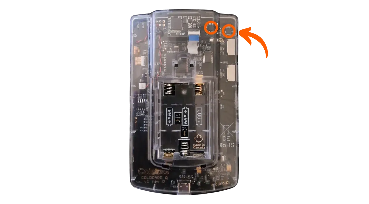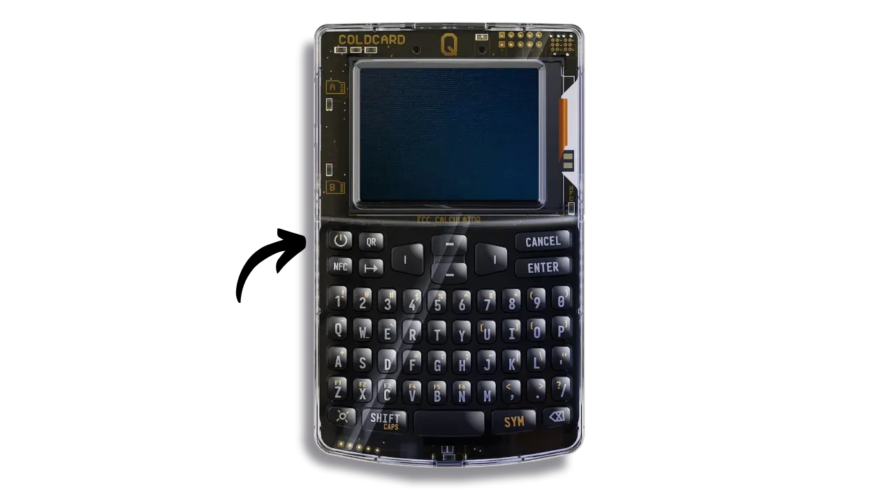 You can now switch on your COLDCARD by pressing the button in the top left-hand corner.