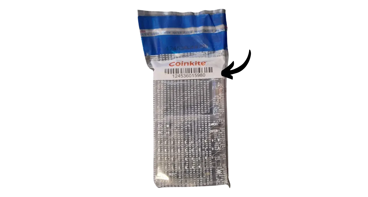 Your COLDCARD Q will then display a number at the top of the screen. Make sure this number matches the one on the sealed bag and on the piece of plastic inside the bag. This ensures that your package has not been opened between the time it was packaged by Coinkite and the time you opened it. Press “ENTER” to continue.