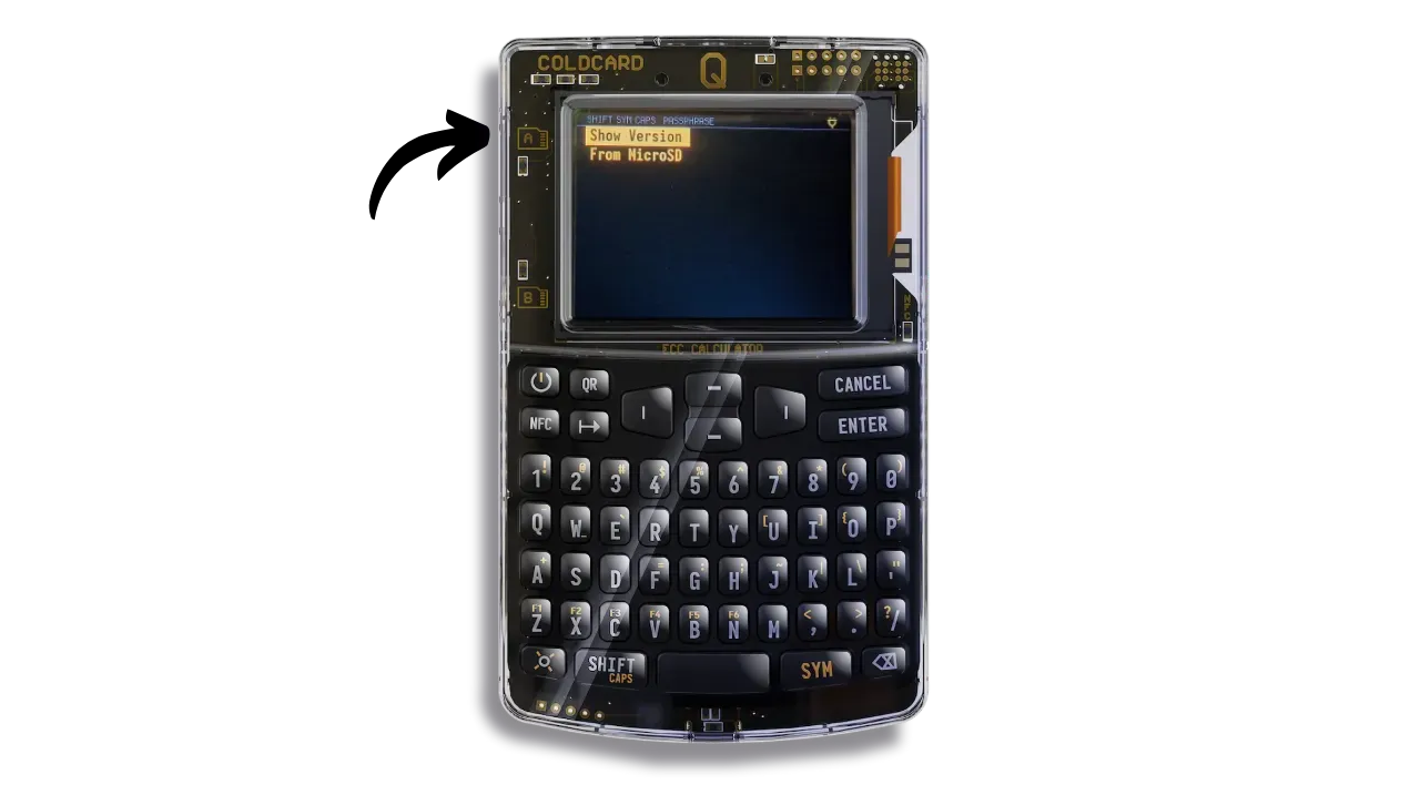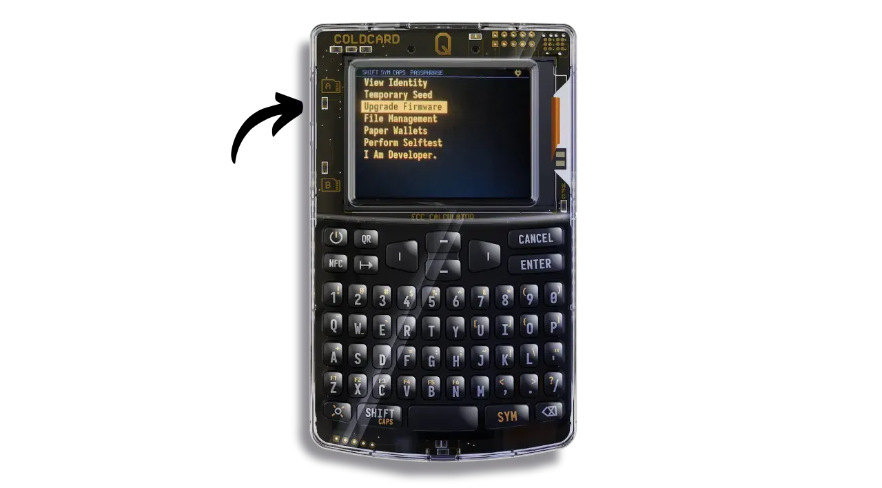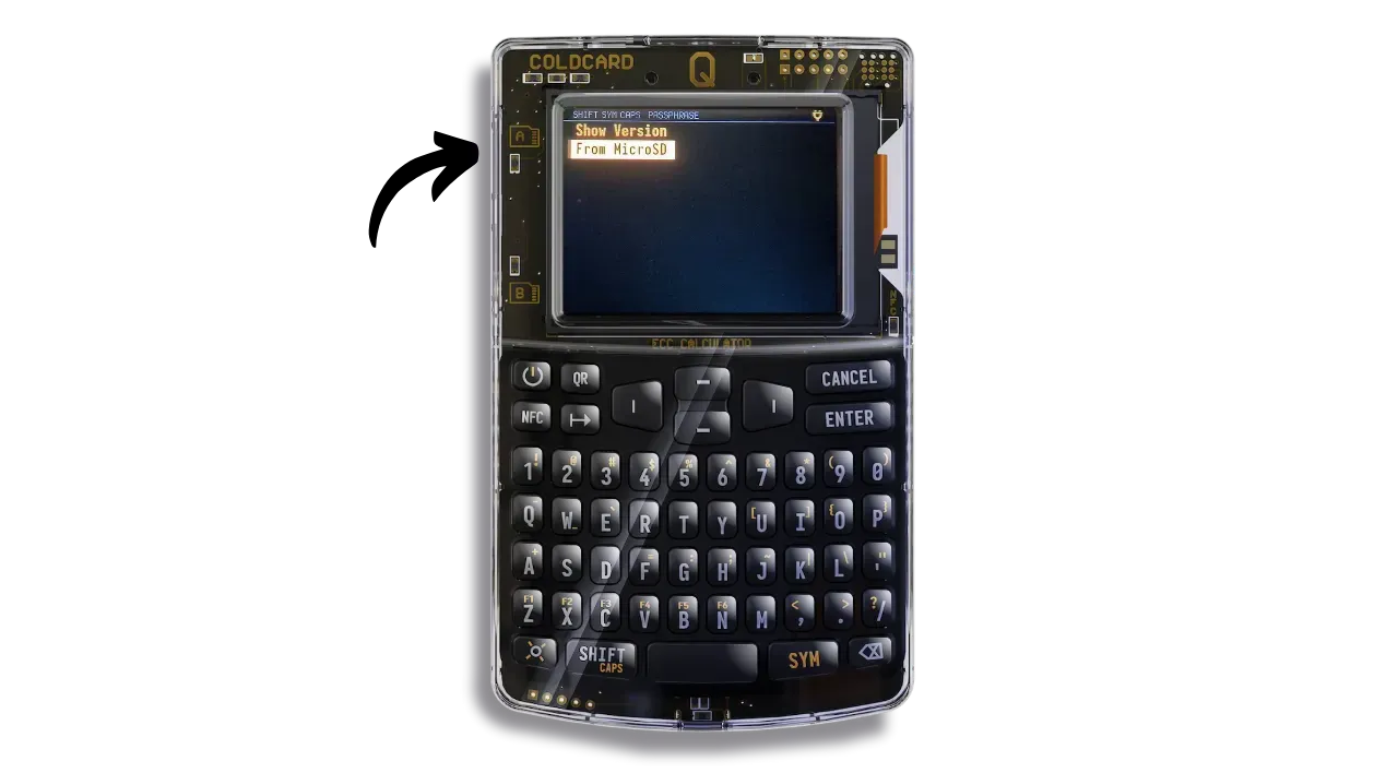 Take a microSD card and transfer the firmware file (document in .dfu) to it. Insert the microSD card into one of your COLDCARD’s ports.
