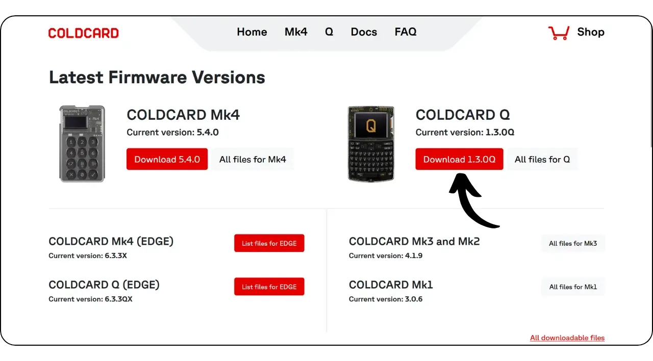 Check on the official COLDCARD website to see if a newer version is available. Click on “Download” to download the new firmware.