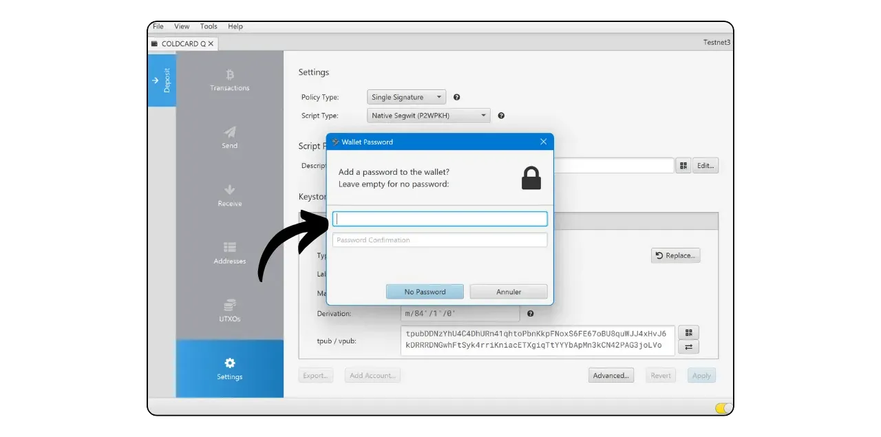 Setting up a new wallet on Sparrow