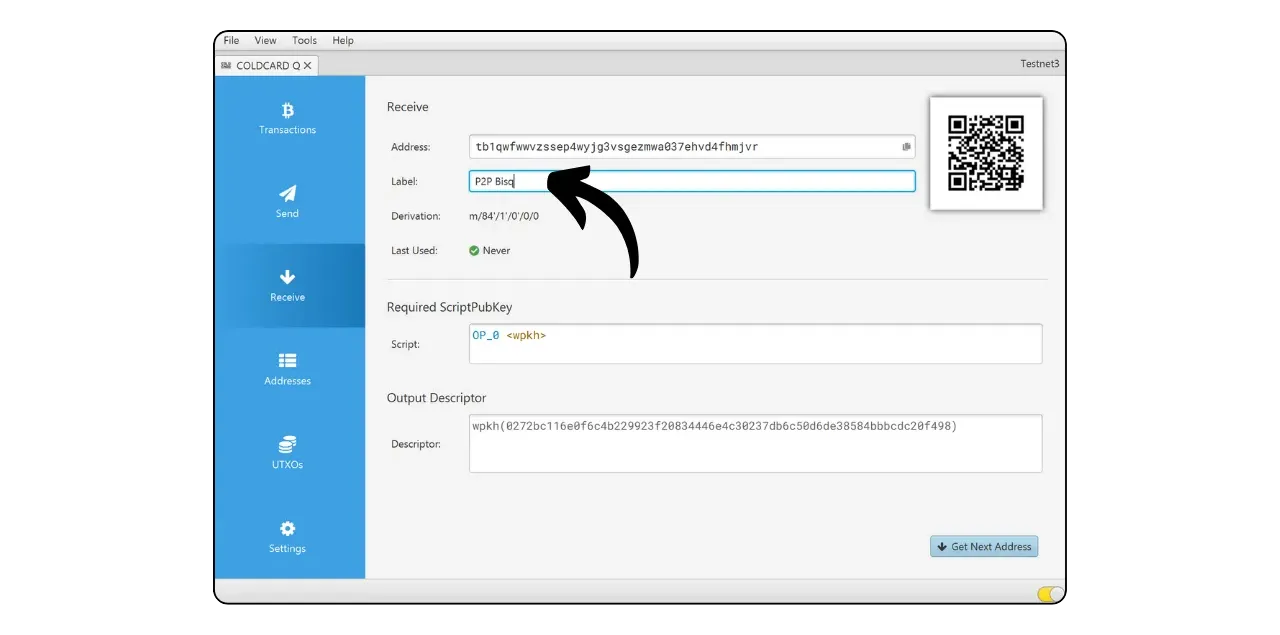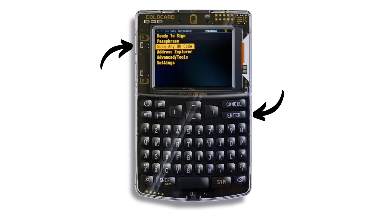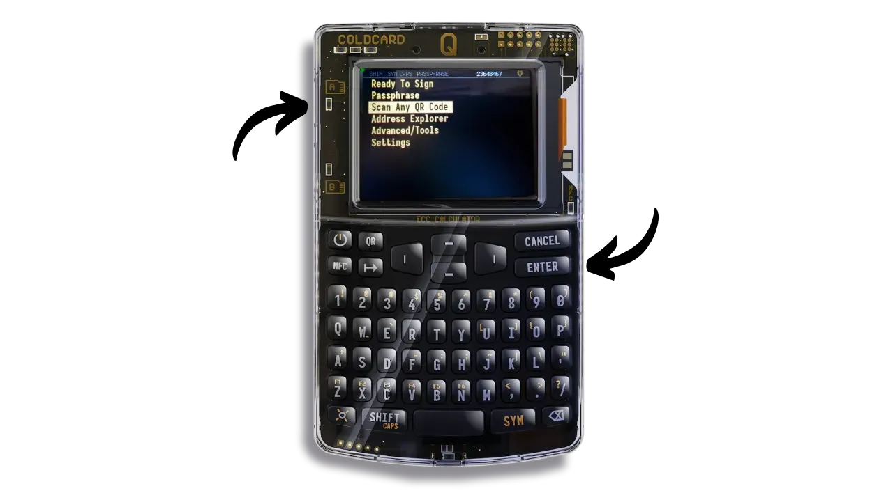On the COLDCARD, select “Scan Any QR Code”. You can also use the “QR” key on the keyboard.