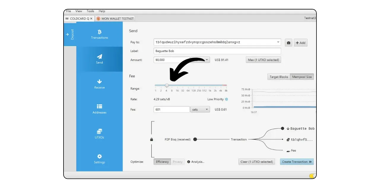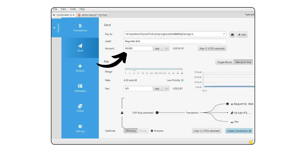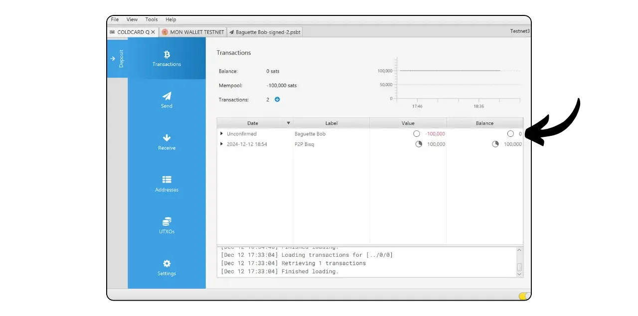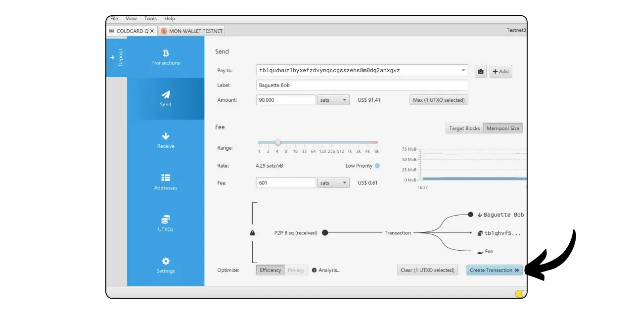 Your signed transaction is now visible on Sparrow. Check one last time that everything is correct, then click on “Broadcast Transaction” to broadcast it on the Bitcoin network.