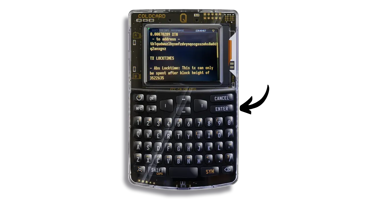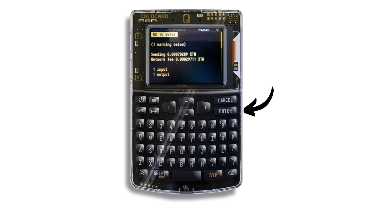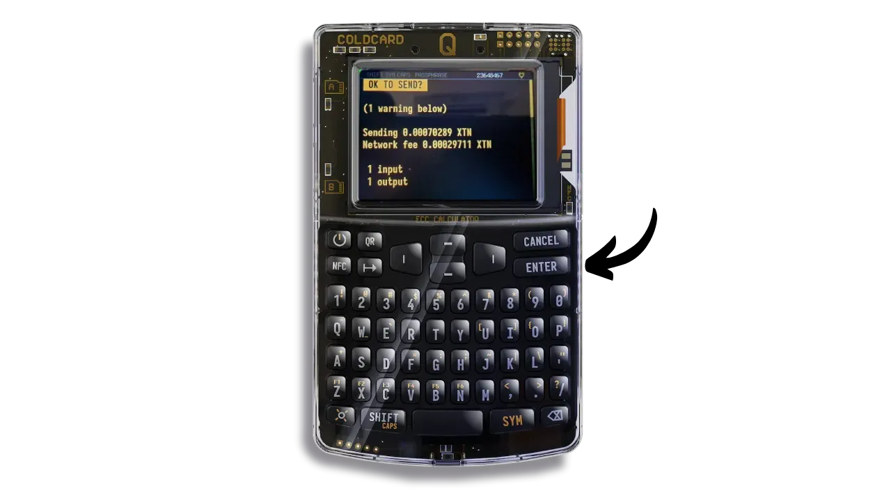 If everything is correct, press the “ENTER” button to sign the transaction.