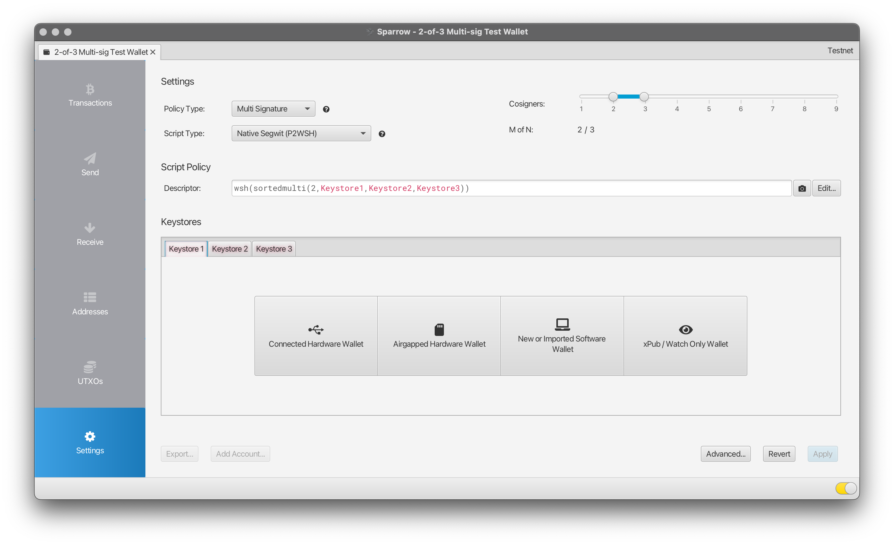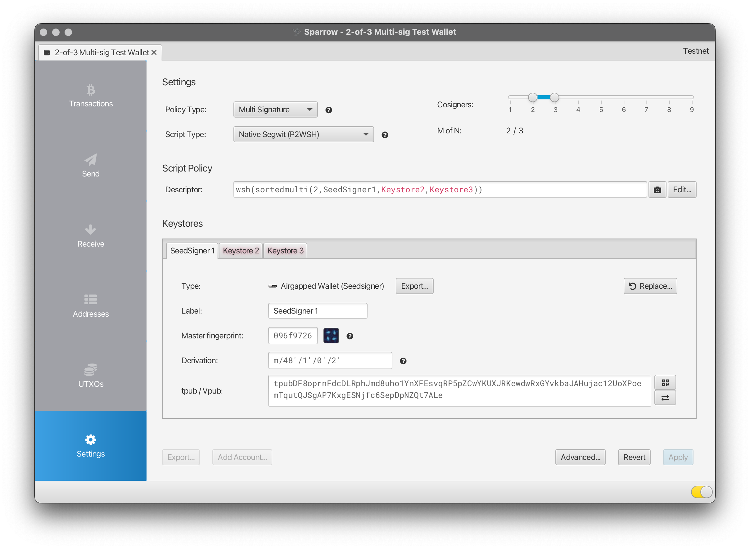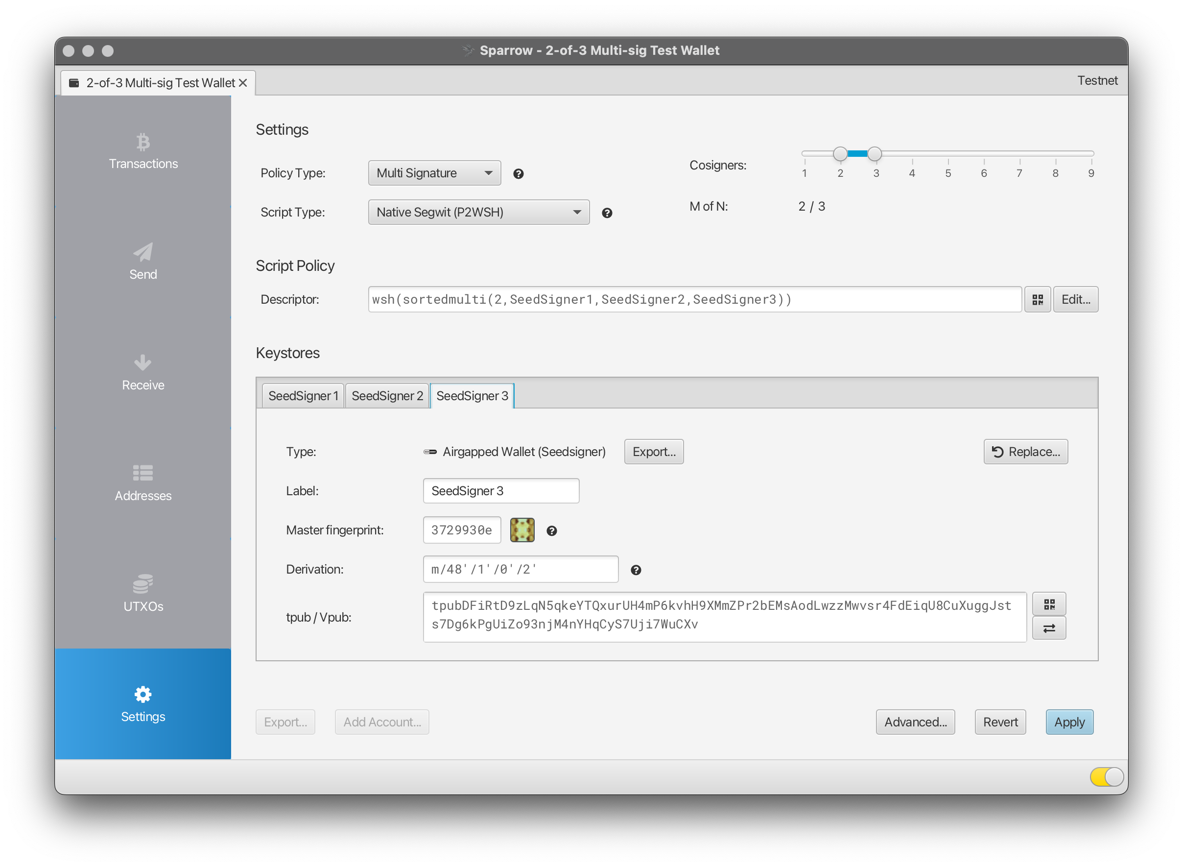 Alright, alright, so you have Sparrow running in testnet-mode, and you have a built, functioning SeedSigner — its finally time to get down to brass tacks, as they say. Let’s go over the process of setting up a simple 2-of-3 multi-signature wallet.