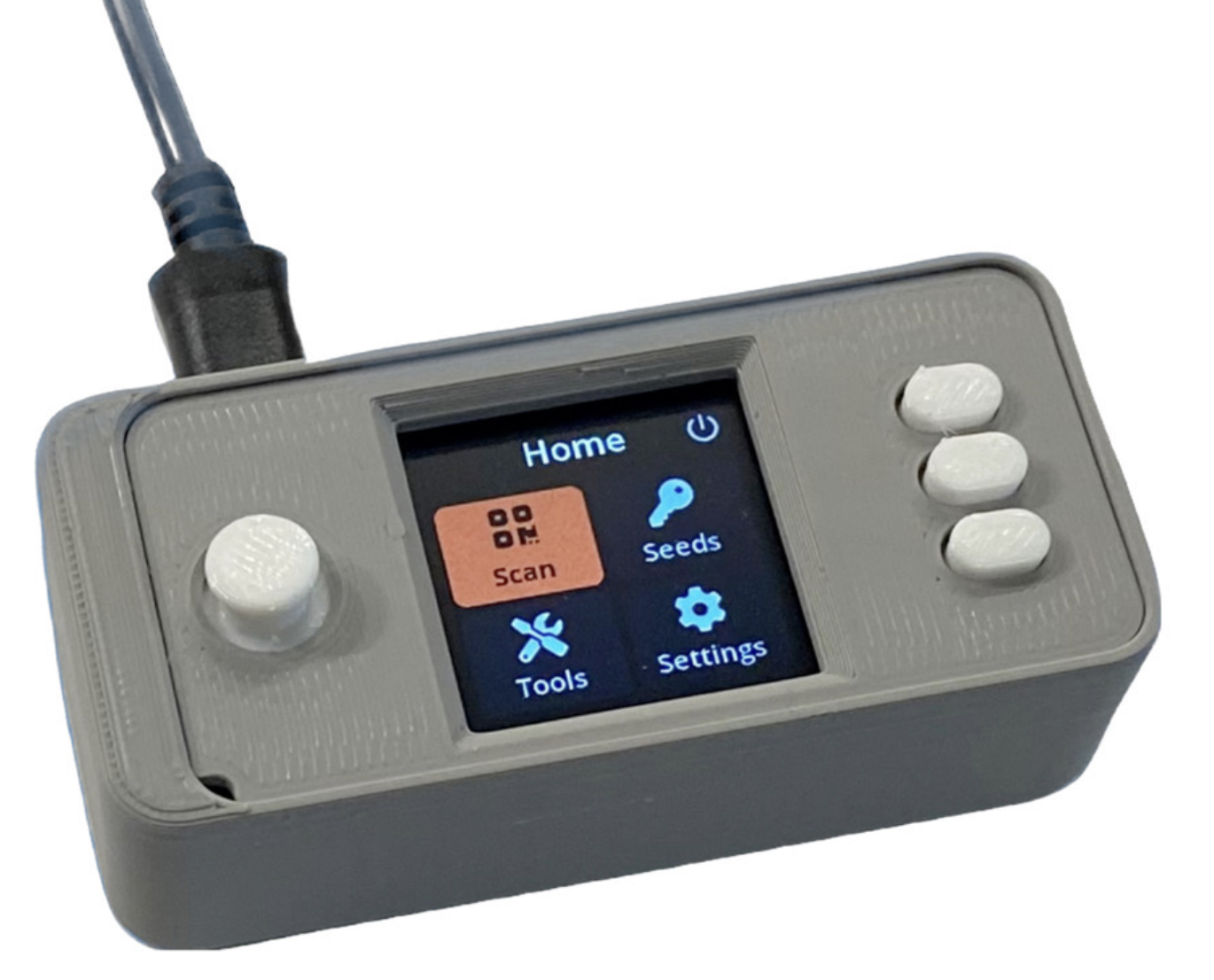 My interest in Specter-DIY led me to begin casually interacting with members of the Specter team, as well as security researcher Michael Flaxman, author of the “10x Bitcoin Security Guide” (https://btcguide.github.io/). Flaxman had put out a public call for some kind of enclosure to be created for the DIY, and having previously tinkered with 3D printing and computer-aided design, I tried my hand at creating a simple printable enclosure. While interacting with Flaxman, he shared an idea for a simple device that integrated a Raspberry Pi Zero single board computer with a display-plus-controls module. The proposed device would allow users to input seed words they had randomly selected from the BIP39 list, and then use the device to calculate a seed phrase’s final word, which acts as a kind of checksum against the words that precede it. (This checksum mechanism is intended to alert users to errors they might make when transcribing a seed phrase and subsequently entering the seed into a given device.) The beauty part of Flaxman’s idea was that the proposed device used a specific version of the Raspberry Pi Zero, the version 1.3, that did not include the physical hardware components necessary for the Pi to connect to other devices via WiFi or Bluetooth.