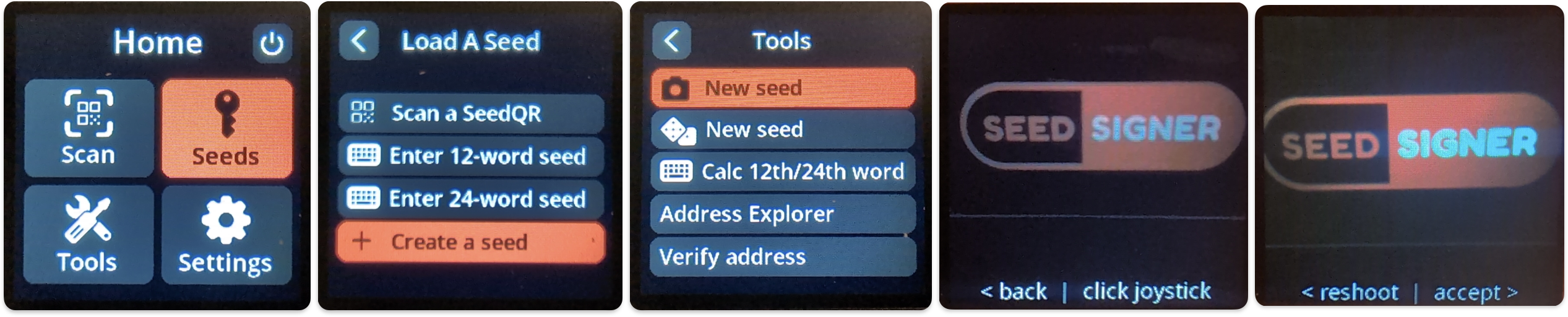 Now follow this menu sequence, which assumes you have temporarily saved the seed(s) you want to use in SeedSigner: