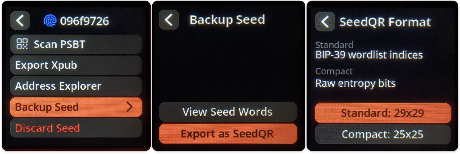 Backup Seed –> Export as SeedQR –> select desired format