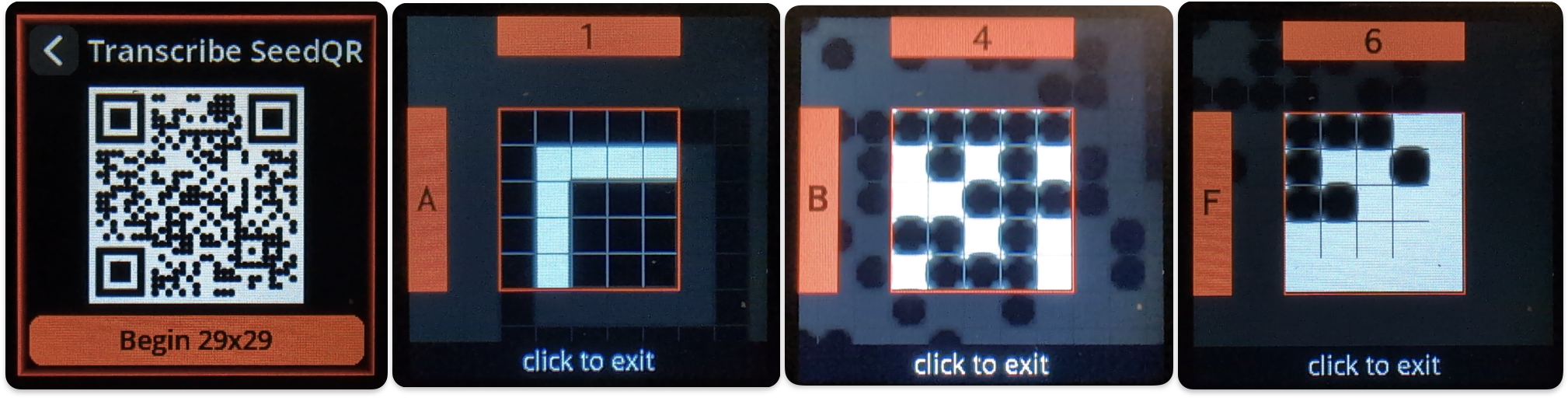 After you exit the QR transcription interface, you will have the option to verify that the SeedQR has been properly transcribed by selecting “Confirm SeedQR”. Selecting this option will activate the camera, and you can scan the freshly-created SeedQR to confirm it has been transcribed correctly.