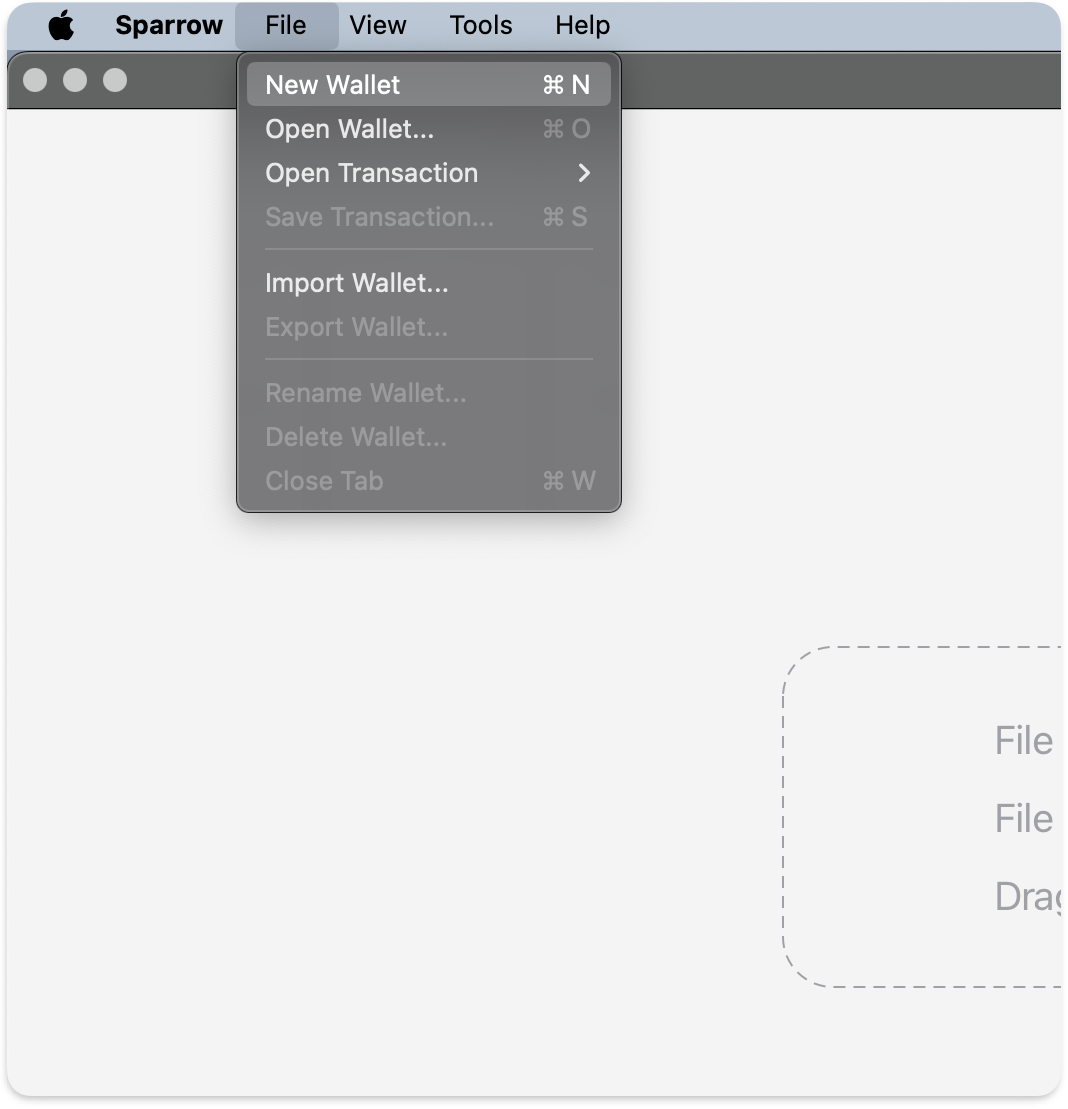 With Sparrow operating in testnet mode, to create the wallet navigate to File —> New Wallet