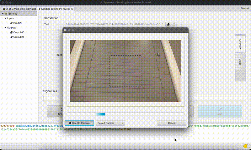 - A webcam-equipped computer running Sparrow bitcoin Wallet (https://sparrowwallet.com)