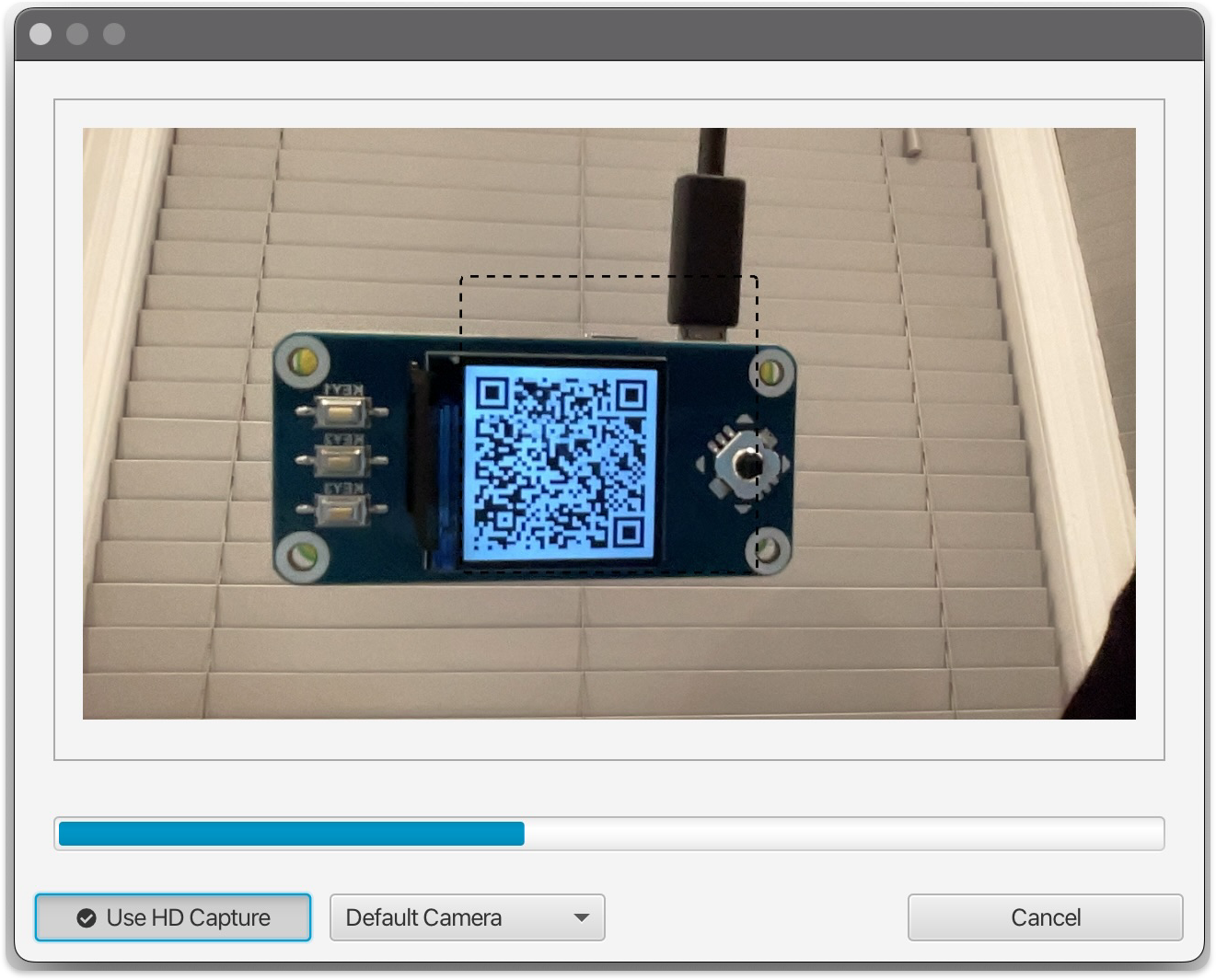 Important Note: If the screen from your SeedSigner is causing a glare in the webcam preview window, you can press up or down on the SeedSigner thumb-stick to adjust the brightness of the displayed QR code; ambient lighting can also have an impact on your webcam’s ability to focus. It should be noted that some low-budget laptops may not have a sufficiently high-resolution camera to scan SeedSigner’s QR codes. Adjusting the “QR Density” setting to “Low” may also resolve webcam scanning difficulties. With some low-quality cameras, advanced techniques can be used to tweak settings and make the camera workable (This is a good resource: https://www.addictivetips.com/windows-tips/access-advanced-settings-for-the-integrated-webcam-on-windows-10/amp/).